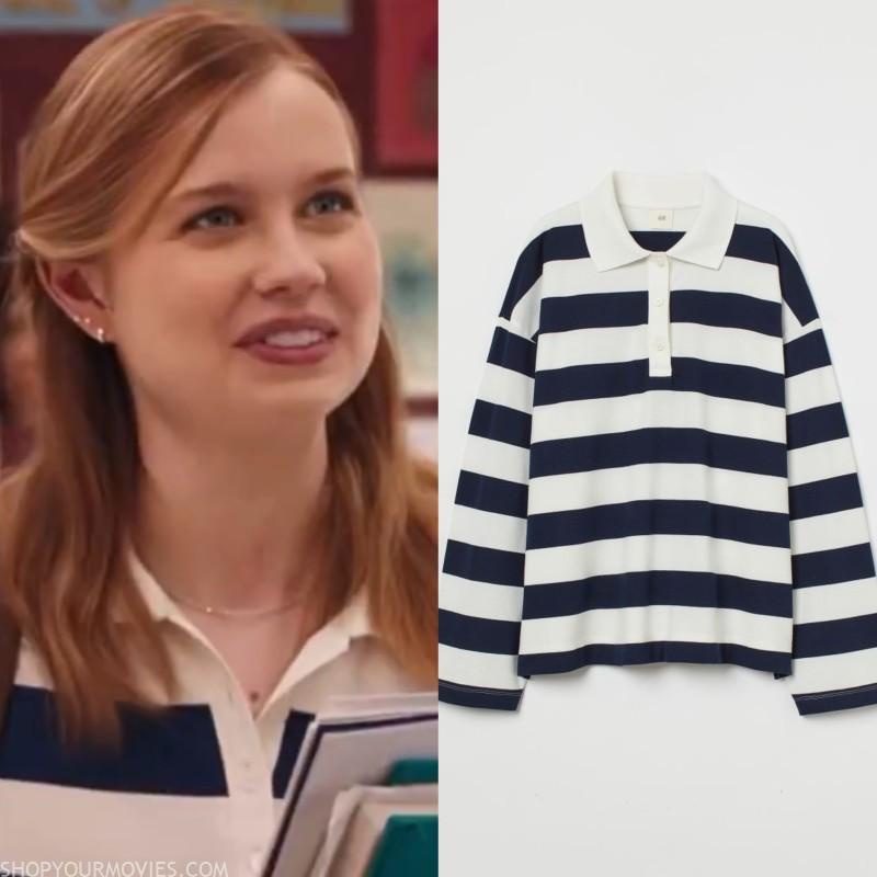H&M Long Sleeved Polo Shirt in dark blue/striped
