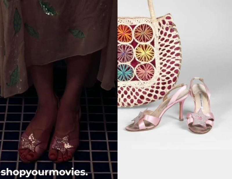 Manolo Blahnik pink silk heels with rhinestone star decoration
