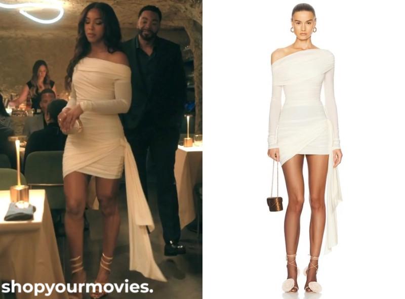 Blumarine White Ruched Draped Long Sleeve Mini Dress