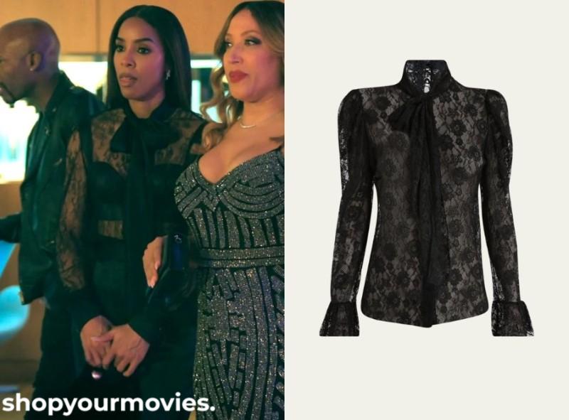 Chloe Black Floral Lace Sheer Tie-Neck Blouse