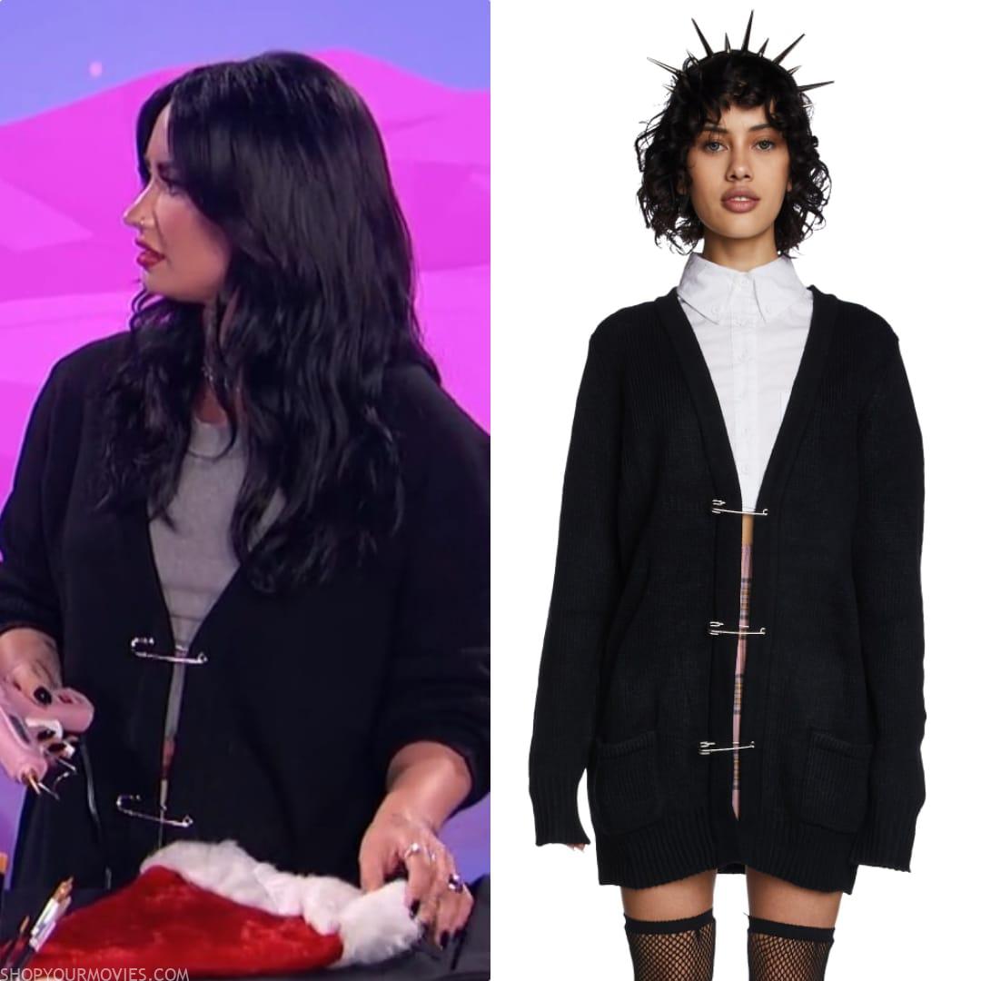 Oversized Black Knit Cardigan with Giant Safety Pin Closures and Pockets on the Front.