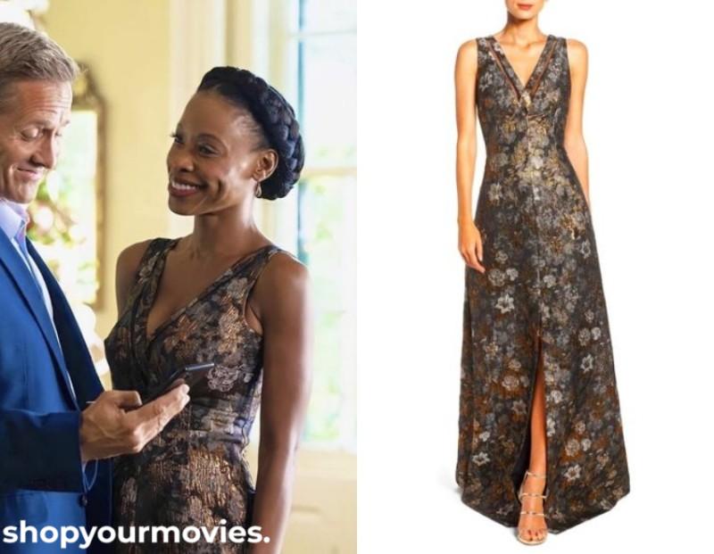 Aidan Mattox Sleeveless Metallic Floral Jacquard Gown in Brown