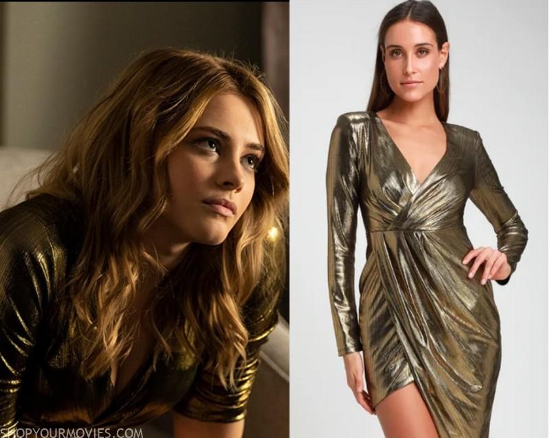 Gold Metallic Asymmetric Wrap Dress