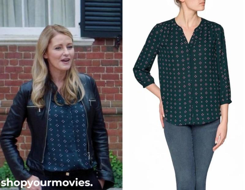 NYDJ Green Print Button Front 3/4 Sleeve Blouse