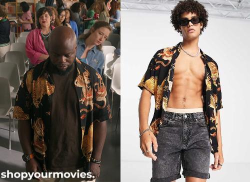 Bershka Black Button Up Shirt with Tiger Print