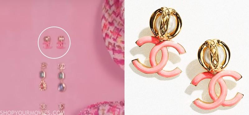 Chanel CC logo pink acrylic gold post and dangle earrings