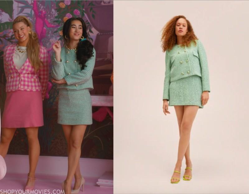 Mango Double Breasted Tweed Jacket in Pastel Green