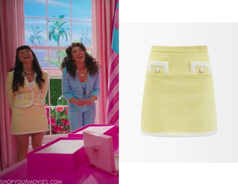 Alessandra Rich Yellow Embellished Tweed Skirt