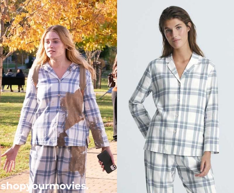 Oysho White/Blue Plaid Cotton Pajama Shirt