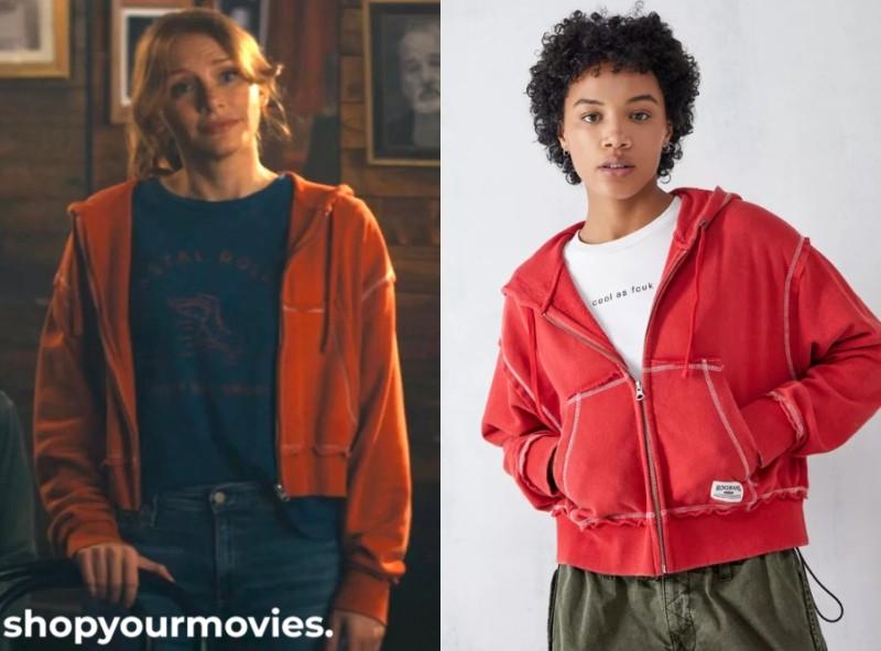 Urban Outfitters BDG Red Contrast Stitch Full Zip Hoodie Sweatshirt
