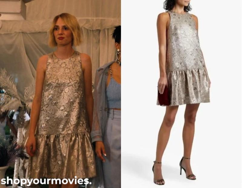Lela Rose Metallic Sleeveless Drop-Waist Flounce Dress In Gray Metallic