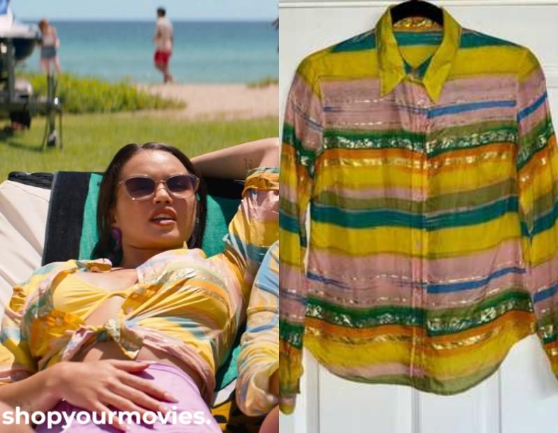 Moschino Watercolor Pastel Silk Gold Stripe Button Down Shirt