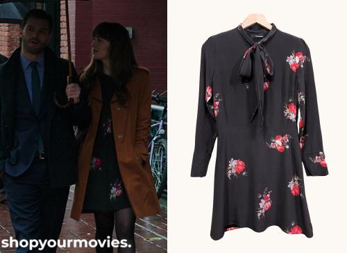 The Kooples Floral Tie Neck Long Sleeve Silk Dress
