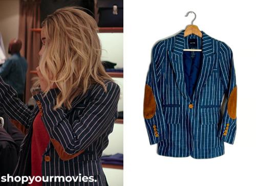 Smythe Suede Elbow Patch Stripe Linen Blend Blazer