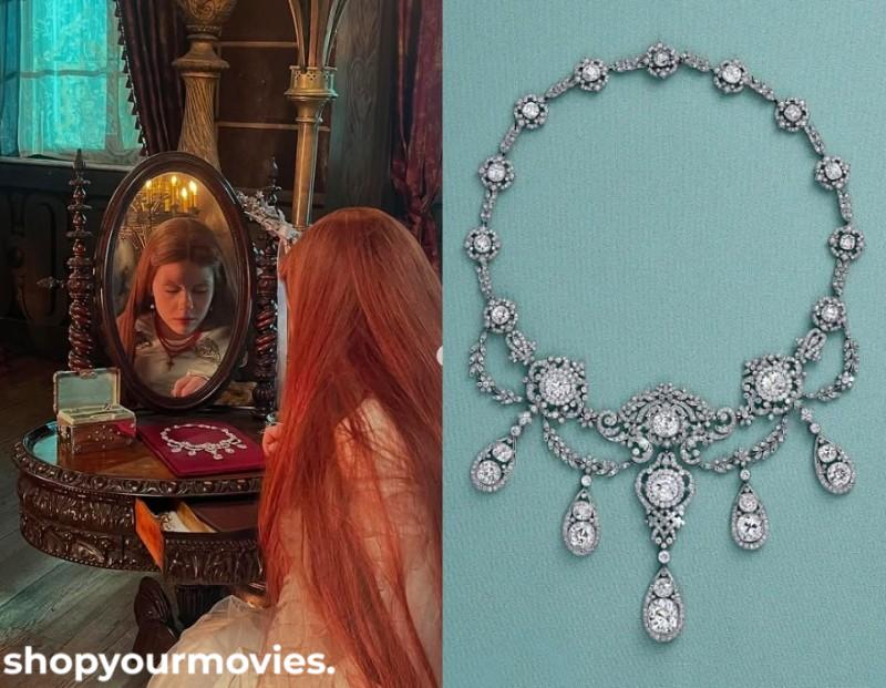- Description: Created by Tiffany & Co. in 1900 for Cleveland society matron Ellen Garretson Wade. Commissioned by her husband, financier and philanthropist Jeptha Homer Wade II, the necklace showcases more than 40 carats of old mine-cut diamonds in an intricate garland and floral design,