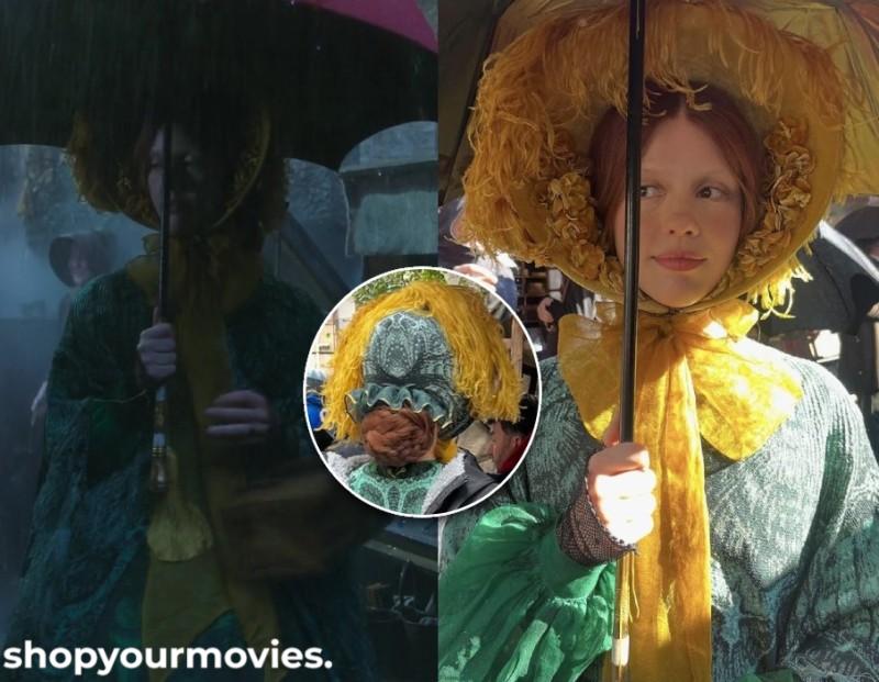Frankenstein (2025): Elizabeth’s yellow feather moth bonnet