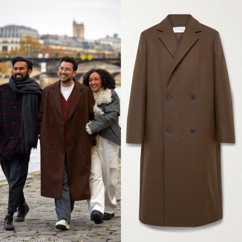 - Description: The Row's garments are always executed to Savile Row-level perfection – it's from there the label takes its name and ethos. This 'Charles' coat is tailored from virgin wool-blend felt with notch lapels, a double-breasted close and full cotton lining for structure. The horn buttons complement the rich chocolate shade.