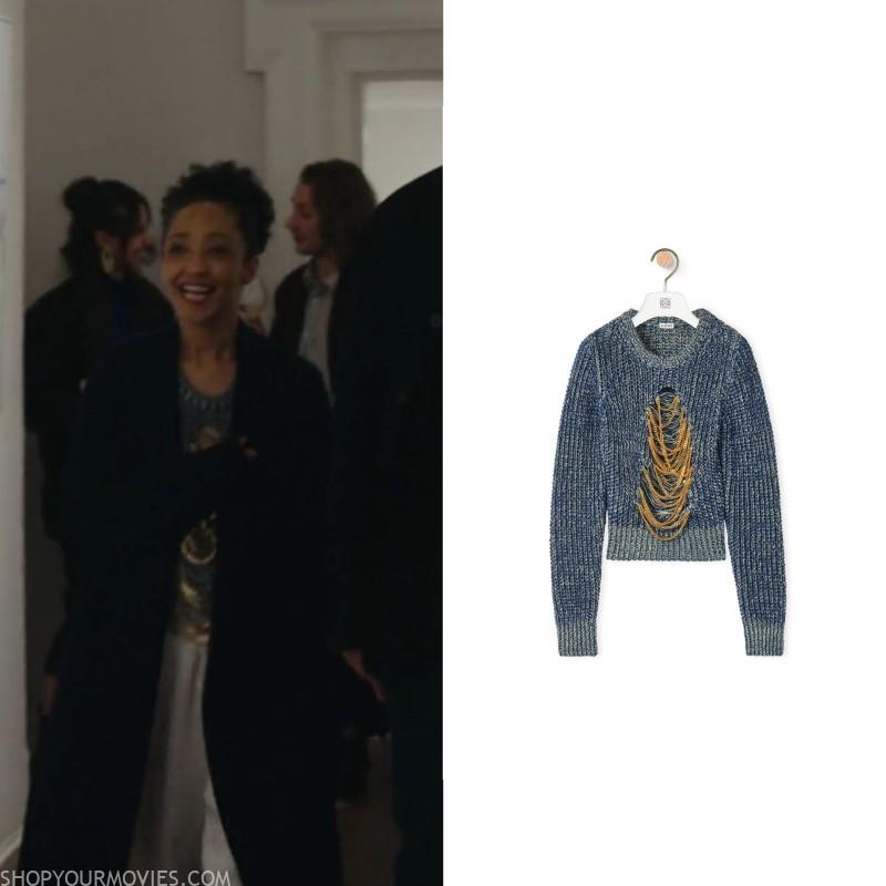 Item Loewe Ripped Chain Sweater In Hemp And Linen in Blue