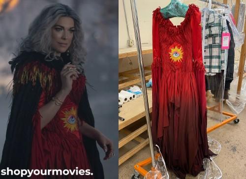 - Description: The Mother Witch costume was also custom made, alongside the cape. Salvador Perez said he wanted the costume was inspired by Winnifred's costume - the symbols seen on Mother Witch's costume and brooch, can be seen later on on Winnie's costume. The embroidery was done by Sylvias costumes in Hollywood.