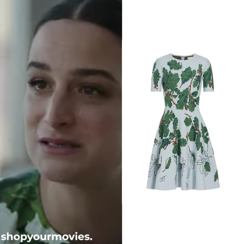- Description: Oscar de la Renta showcasedtheirlatest collection in a short film paying homage to New York City. Filled with traditional scenes of walking the busy sidewalks, hailing a cab, leaving The Metropolitan Museum of Art, and ordering slices of pizza, models strutted edgy checkered, semi-sheer stylesmixed withthe brand's more traditional, floral-embroidered pieces.Behind-the-scene views of the atelier show the inspirationand craftsmanshipof the sequins, feathers, lace, and fringe that highlight the glamoroussilhouettes.Knit from a stretch cotton blend, Oscar de la Renta's short-sleeve knee-length dress is defined by a flared skirt and large jacquard acorn patterns.