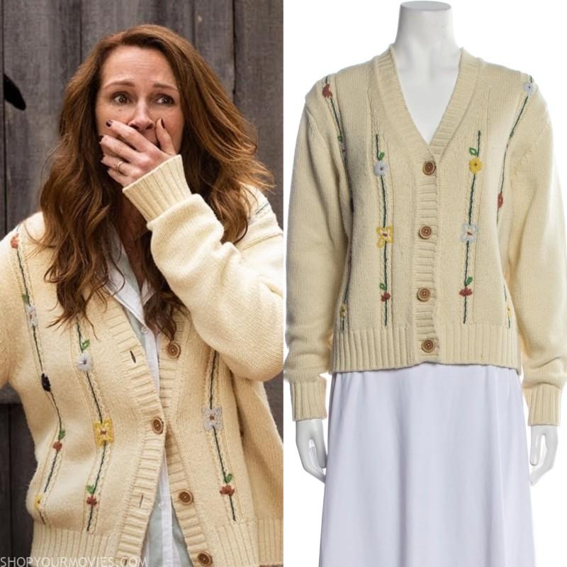 Re/Done 50s V-Neck Ivory Floral-Embroidered Knit Cardigan