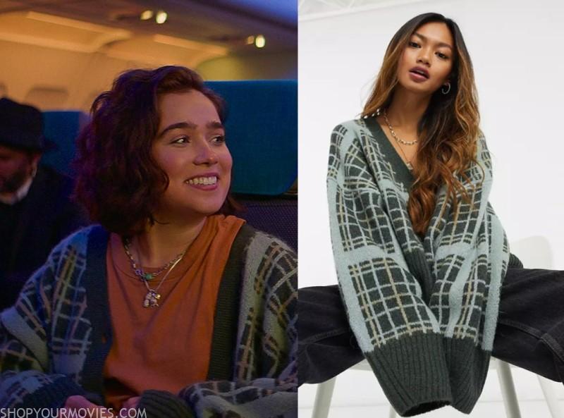 Weekday Cora check print cardigan in green
