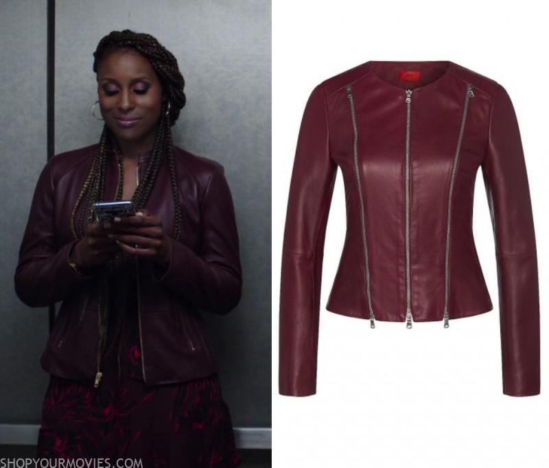 Item: Hugo Boss Fitted leather jacket with zip details: