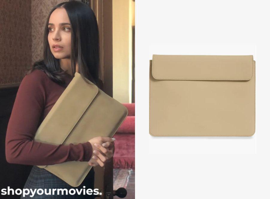 Rains Beige Faux Leather Portfolio Laptop Sleeve.