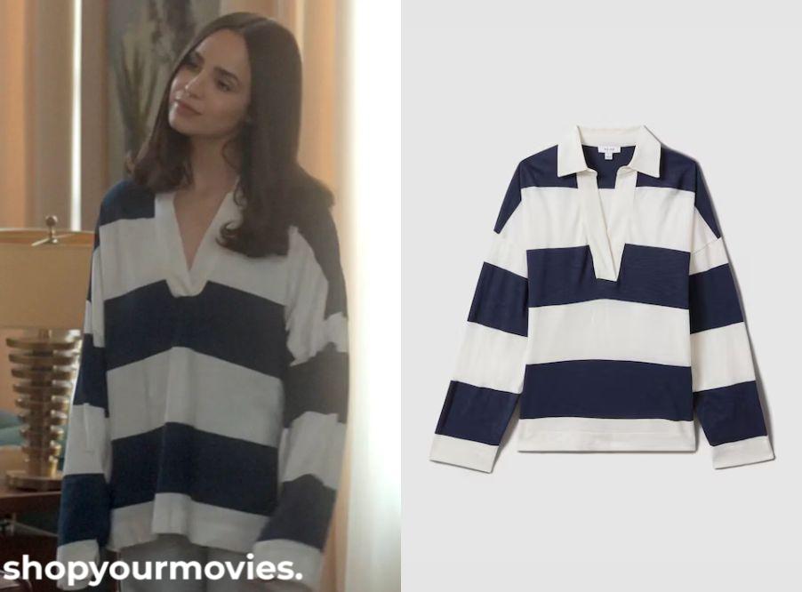 Reiss Navy/White Striped Rugby Long Sleeve Polo