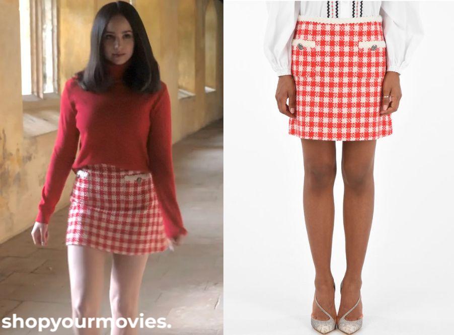 Maje Red Check Tweed Mini Skirt
