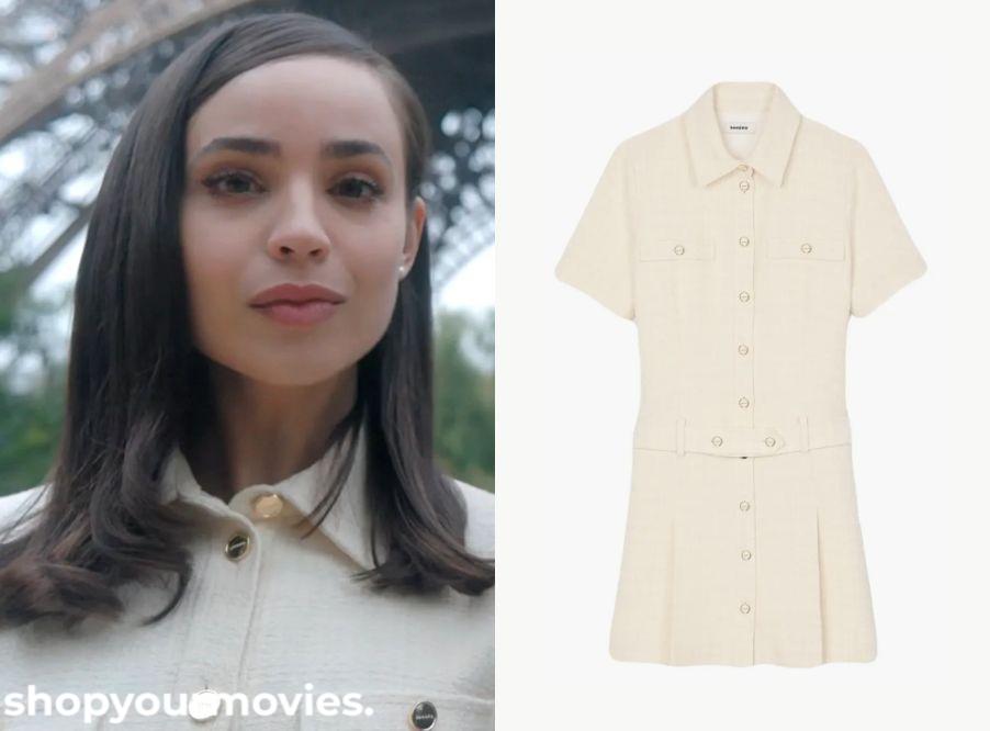 Sandro White Short Sleeve Button Front Tweed Mini Dress