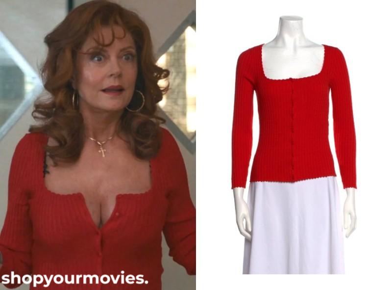 Sezane Red Ribbed Knit Square Neck Cardigan