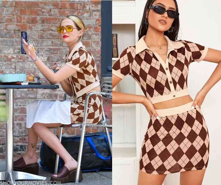 Shein Argyle Print Half Button Crop Top & Bodycon Skirt