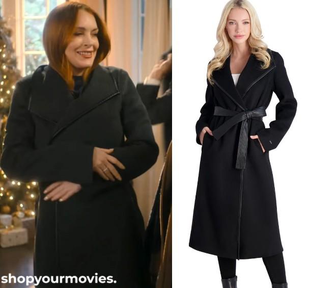 TAHARI Juliette Women's Wool Blend Double Face Faux Leather Trim Belted Coat