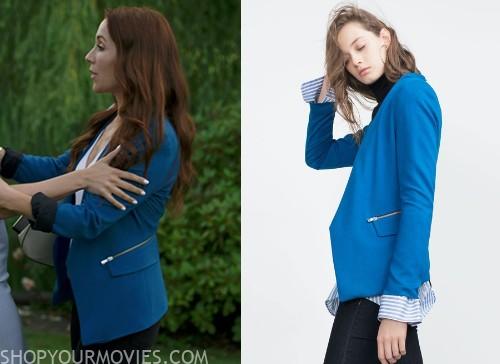 You can actually find two different versions for this blouse, by the same brand and in the same exact style. There is only a change of buttons. If you are looking for a similar blouse to the one worn by Jessica (screen accurate, not screenworn, yon can find it on eBay here for £15.85. If you do enjoy this blouse but prefer less buttons, you can find the same exact style, color and brand here on eBay for £17.