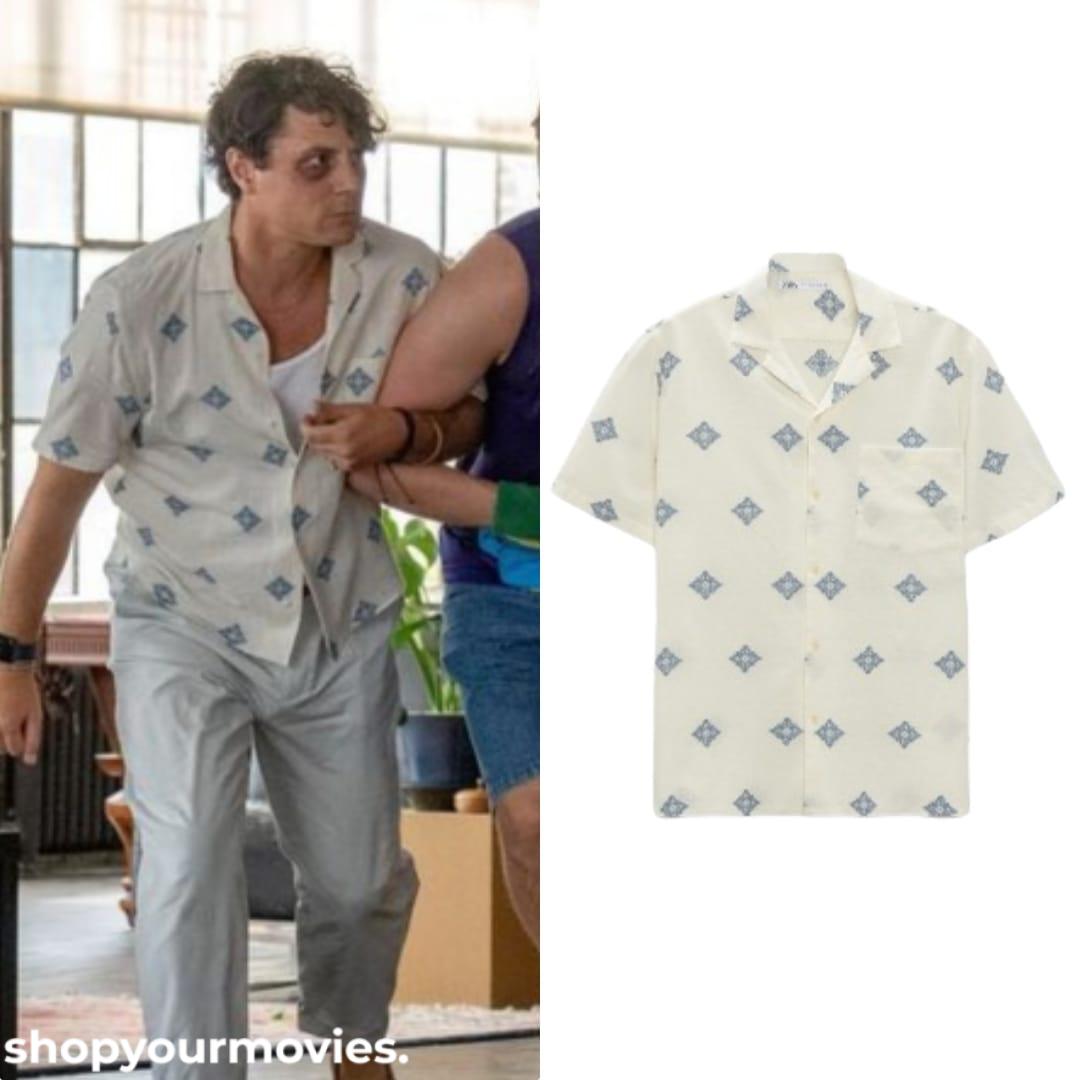 - Description: Geometric Embroidered Shirt with a Camp Collar, Short Sleeves, a Patch Pocket and Button Fastening