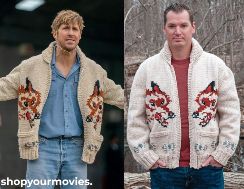 custom cardigan made using altered Mary Maxim Wolf Cardigan pattern