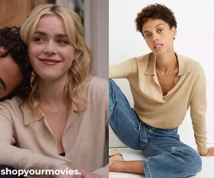 Madewell 100% Merino Wool Polo Sweater Pullover Long Sleeve Beige