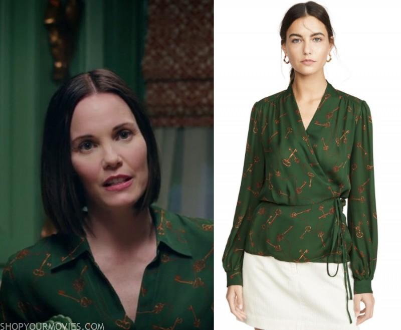 L'AGENCE Cara Silk Wrap Blouse Green Key Print Top