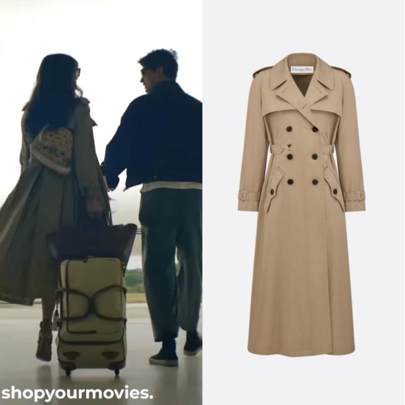 - Description: The beige trench coat presents a refined new take on an essential wardrobe piece. Crafted in cotton, it is enhanced by a contrasting embroidered bee on the front, a key symbol of the House. The adjustable side placket highlights the waist, while topstitched details and pointed pockets with buttoned flaps create a sophisticated look. The trench coat may be paired with any piece for a casual or elegant look.