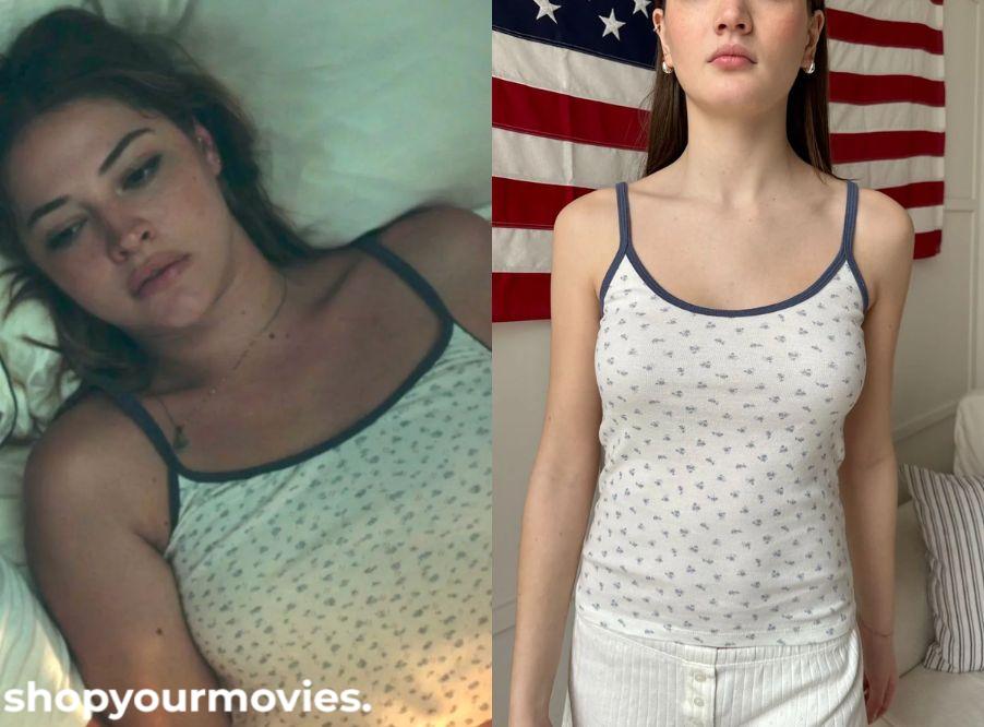 Brandy Melville John Galt White Ditsy Floral Contrast Trim Tank Top.