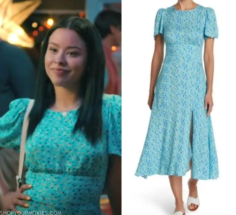 AFRM Jamie Print Open Back Midi Dress Blue Ditsy Floral