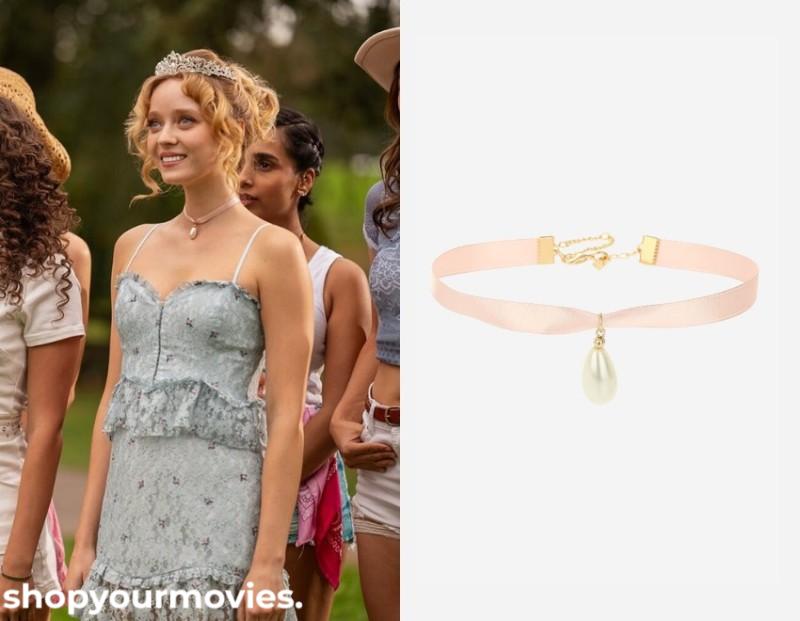 Topshop Pink Ribbon Choker with Pearl Pendant