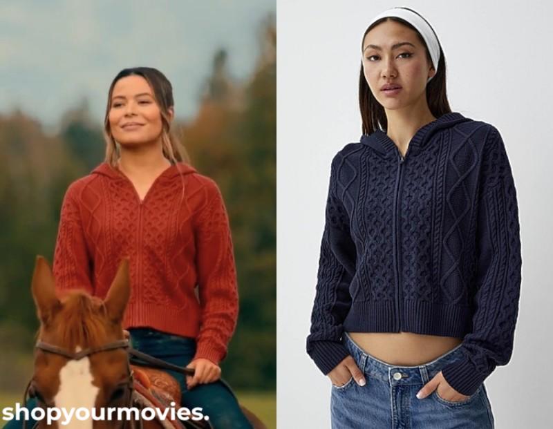 Twik Hooded Cables Long Navy Zippered Cardigan