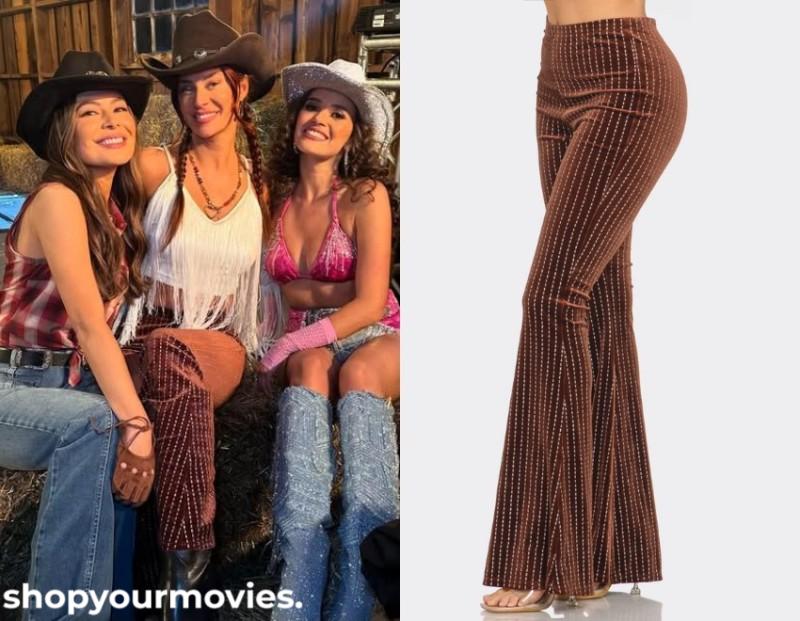 Baha Ranch Western Wear Brown Velvet Flare Bell Bottom Pants with Glitter Detail