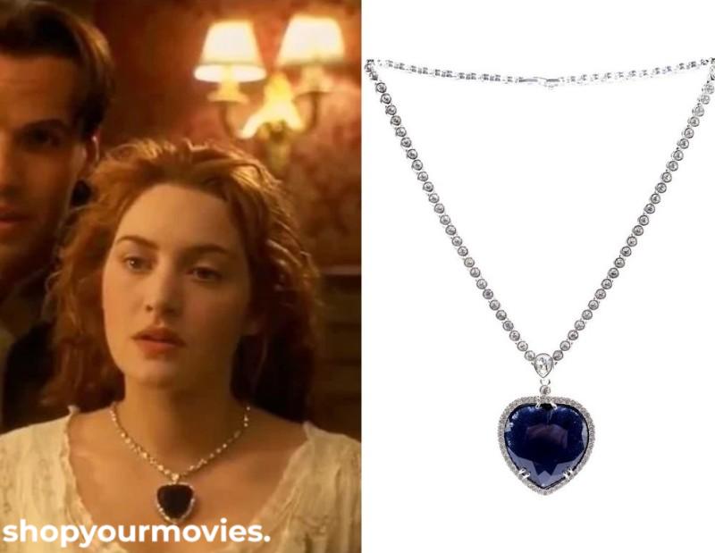 Several Heart of the Ocean necklaces were custom made by Asprey & Garrard from cubic zirconia for use in the film. Another necklace, later worn to the Oscars by Celine Dion, was made using a 171-carat blue sapphire and 103 diamonds. An official replica, which is shown here, was sold by J. Peterman.