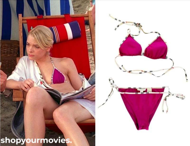 Burberry dark pink bikini with plaid string ties