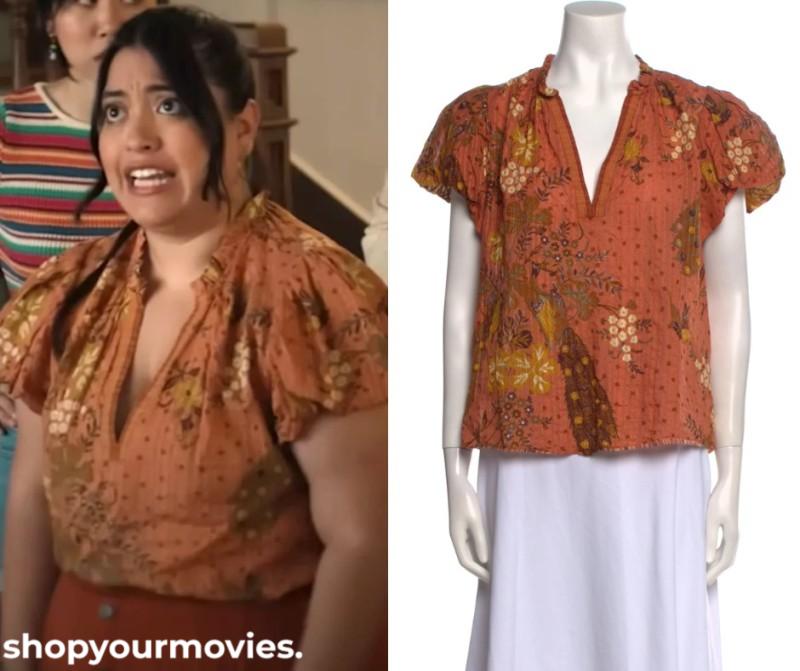 Ulla Johnson Brand Floral Print V-Neck Blouse
