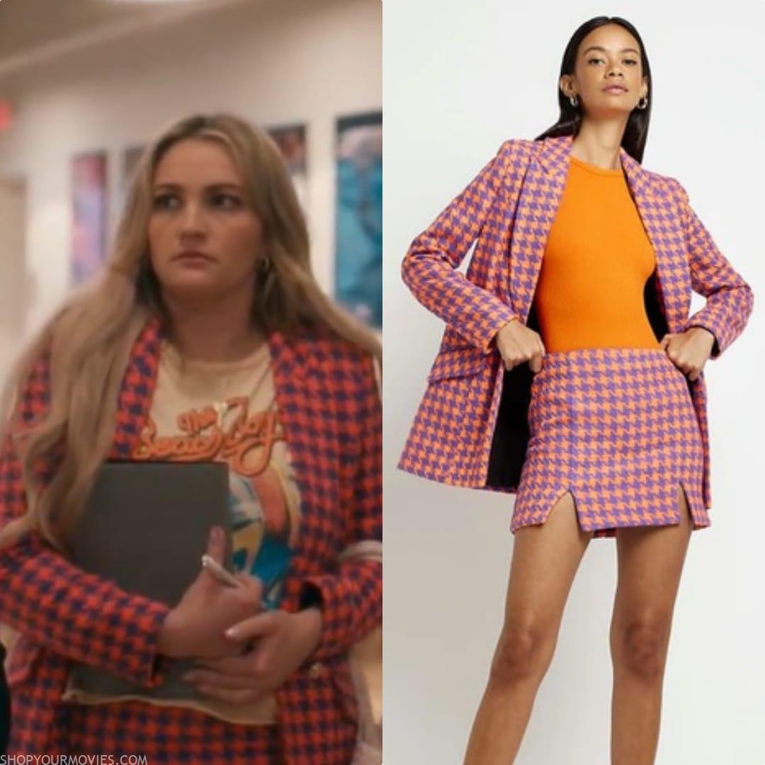 Houndstooth Bouclé Miniskirt in Orange with Front Slits
