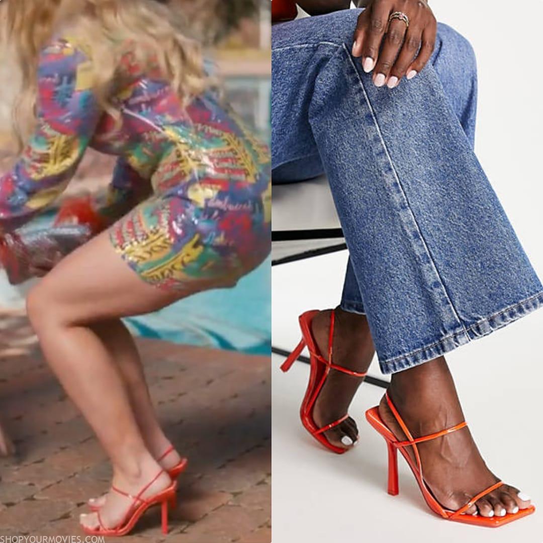 Heeled Sandals with Square Toes in Orange Patent